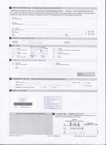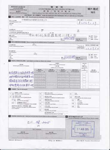 中华国际海洋建筑科技有限公司在澳门财政司开业文件