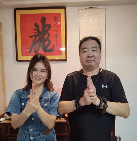 院长与王利华(妤菁}女士 在本会珠海金湾区会所留影