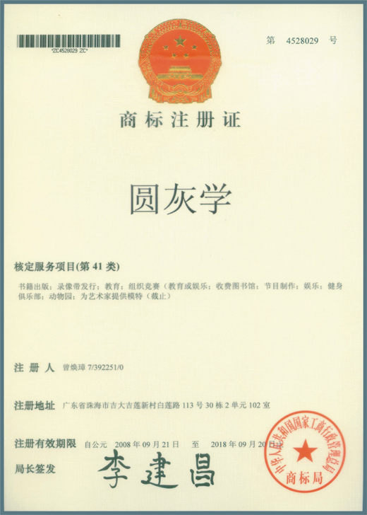 “圆灰学”注册商标第四十一类文件